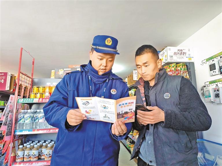 拉薩市消防救援支隊(duì)宣傳員對(duì)臨街商鋪經(jīng)營(yíng)人員講解消防安全常識(shí)。