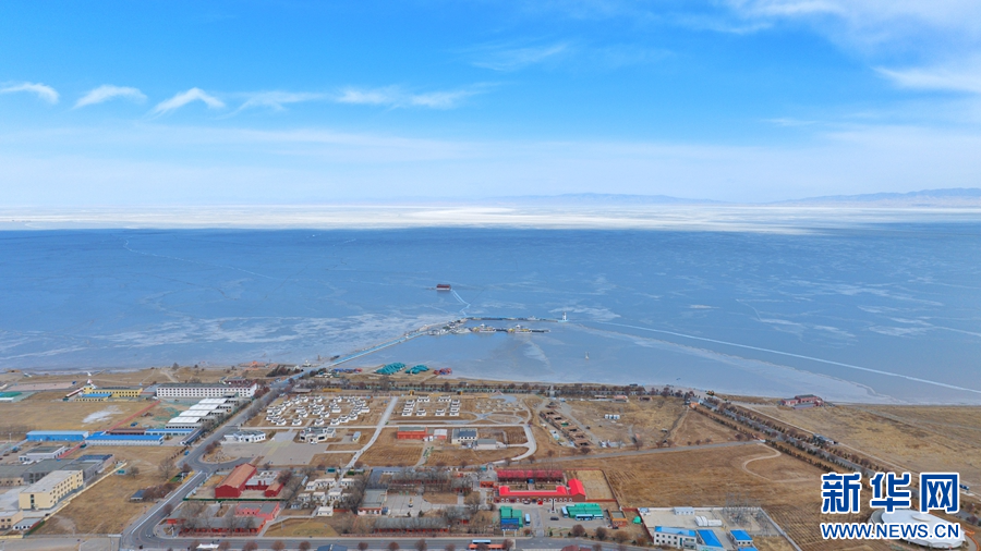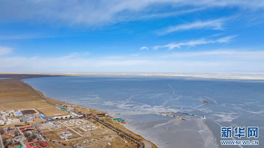 這是2月15日拍攝的青海湖北岸一角(無人機(jī)照片)。新華網(wǎng)發(fā) (宋忠勇 攝)
