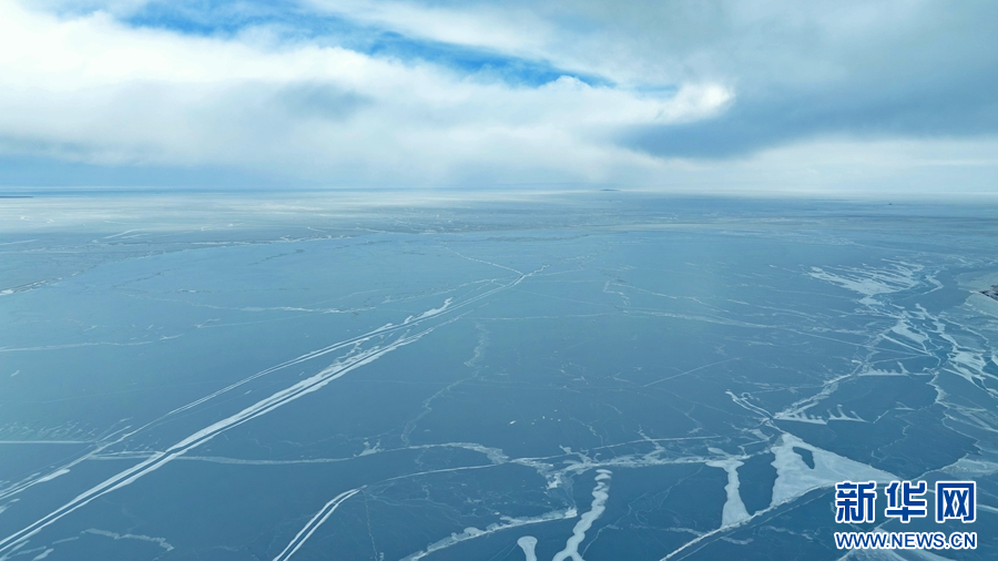 2月15日,青海湖湖水被冰層覆蓋(無人機(jī)照片)。新華網(wǎng)發(fā) (宋忠勇 攝)
