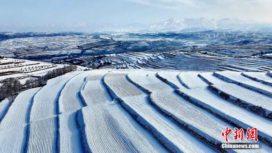 高原春日,青海省海東市互助土族自治縣東山鄉(xiāng),一場(chǎng)春雪過(guò)后,山巒、梯田在航拍鏡頭下宛若“大地指紋”。圖為山巒、田地被白雪覆蓋。