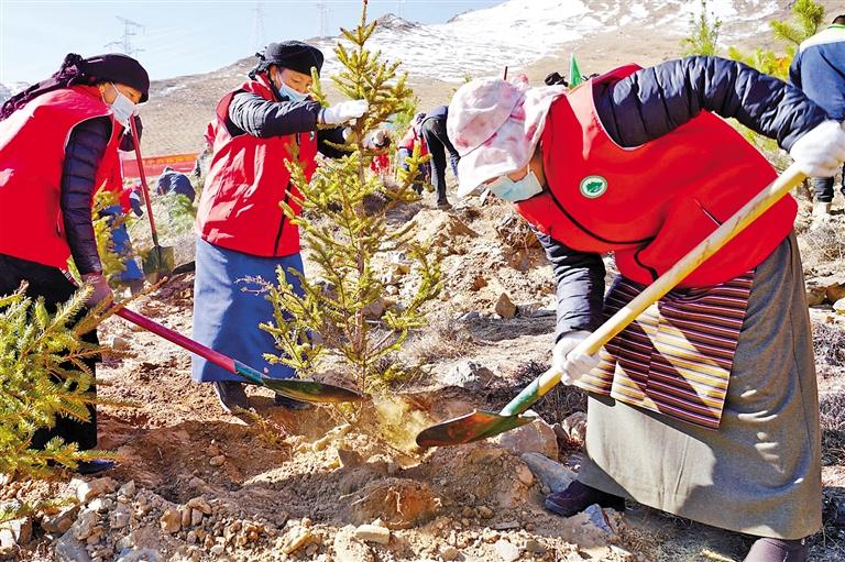今年3月12日是第47個植樹節(jié)。當(dāng)天,西藏各地舉行了植樹活動,干部群眾紛紛走進綠化區(qū)、綠化點參加義務(wù)植樹活動?;顒蝇F(xiàn)場,大家熱情高漲,分工協(xié)作,配合默契。有的揮鍬鏟土,有的扶苗培土,有的踩實固根,還有的提桶澆灌,各個環(huán)節(jié)緊密銜接,現(xiàn)場一片繁忙。