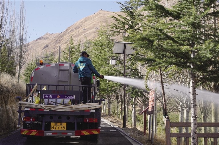 在南山公園,記者看到工人們正忙著給樹澆水。南山公園安保人員扎西次旺告訴記者:“雖然我是負(fù)責(zé)安保工作的,但是我不忙的時(shí)候也會(huì)去給樹澆水,因?yàn)檫@里的每一棵樹、每一株草對(duì)于我們而言都有非常大的意義。通過(guò)大家的努力,我相信我的家鄉(xiāng)會(huì)變得越來(lái)越綠,生態(tài)環(huán)境也會(huì)越來(lái)越好?!?/p>