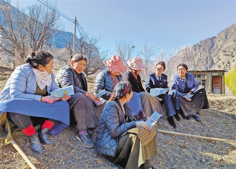 圖為朗縣稅務局工作人員走進田間地頭,向農(nóng)牧民群眾宣傳稅費優(yōu)惠政策。記者 袁海霞 攝