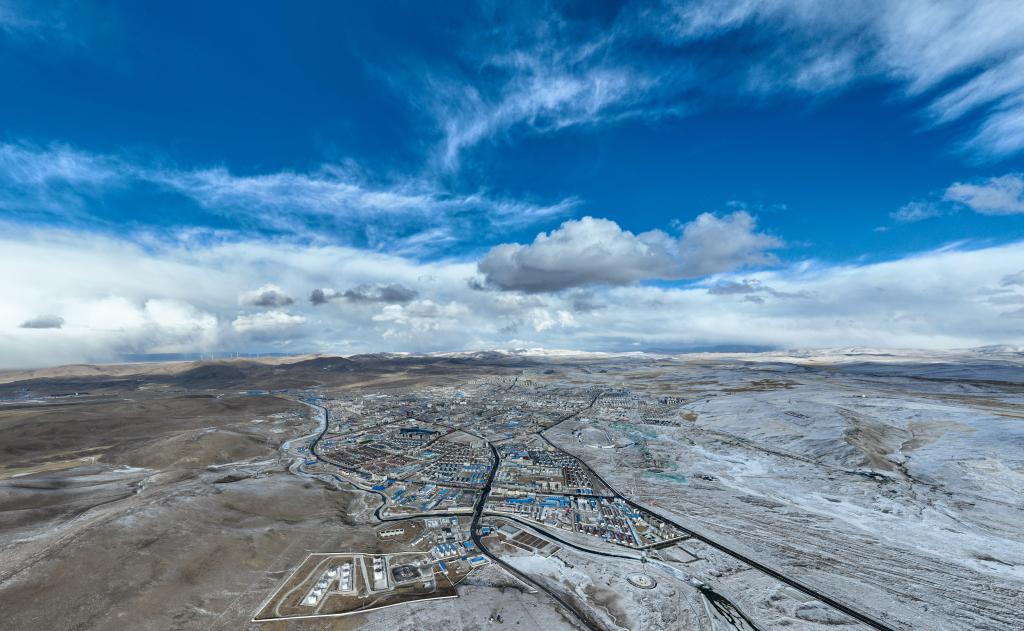 2025年2月12日拍攝的那曲市城區(qū)(無人機(jī)照片)。新華社記者晉美多吉攝