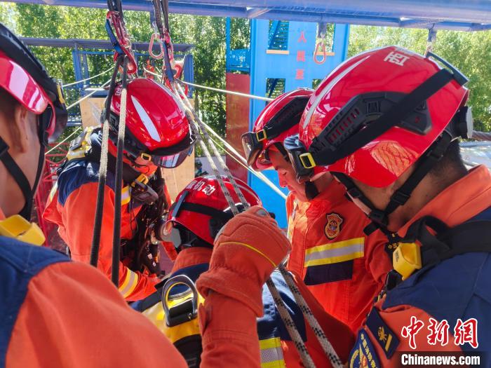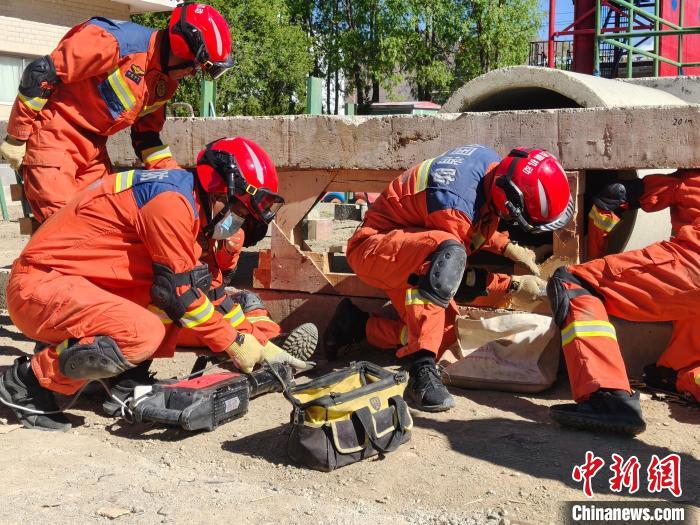 圖為消防員開展模擬狹小密閉空間救援。洛桑頓珠 攝