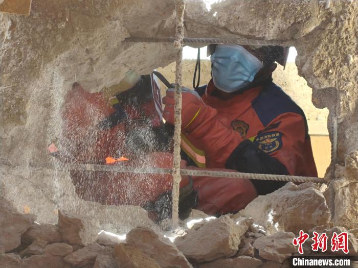 圖為消防員開展模擬樓層層疊倒塌頂撐救援。洛桑頓珠 攝
