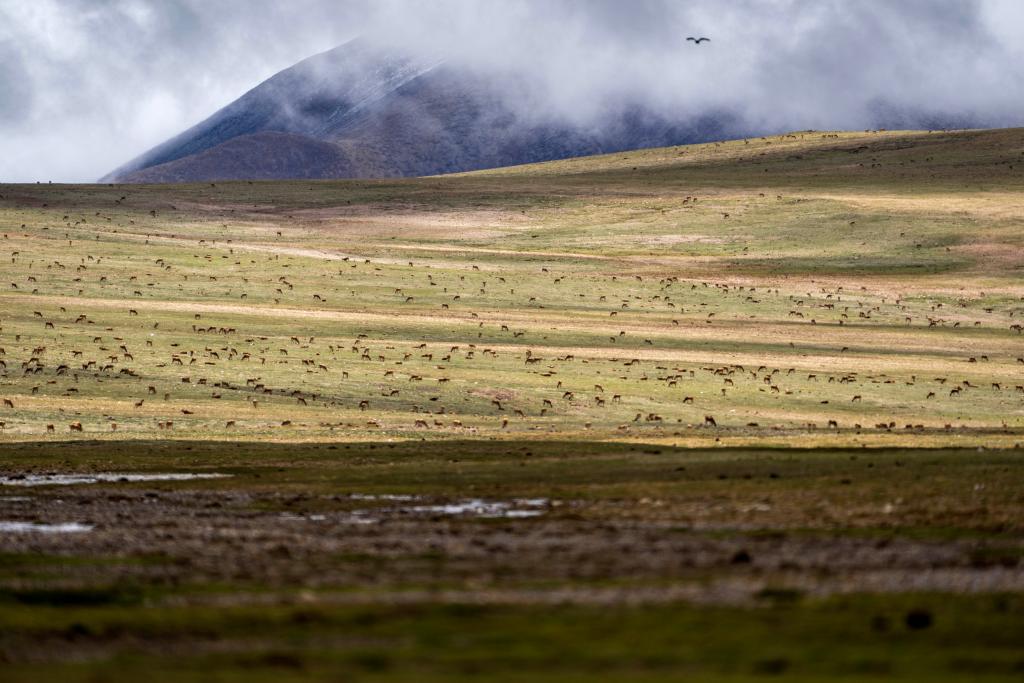 每年7月,在這里出生的藏羚羊幼崽會(huì)跟隨母羊遷徙至棲息地。每到這時(shí),藏羚羊們會(huì)齊聚森隆藏布河西岸,陸續(xù)過(guò)河。