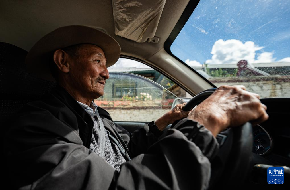 多布杰老人駕車前往林則生態(tài)文化旅游景區(qū)(7月23日攝)。新華社記者 丁增尼達(dá) 攝