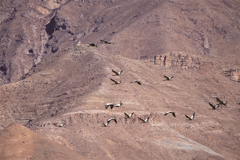 寒冬到來,雅江中游河谷黑頸鶴國家級自然保護區(qū)林周澎波區(qū)域迎來大批越冬黑頸鶴。作為國家一級保護動物、高原特有珍稀物種——黑頸鶴,2025年6月被正式評為拉薩市鳥,成為城市生態(tài)文化名片。它們在此駐足棲息、覓食嬉戲,勾勒出一幅人與生靈和諧共生的美好圖景。林周縣以制度護航、全民參與、科學管護等方式筑牢保護屏障,讓“高原仙子”安穩(wěn)越冬,用種群遞增印證高原生態(tài)保護實效。