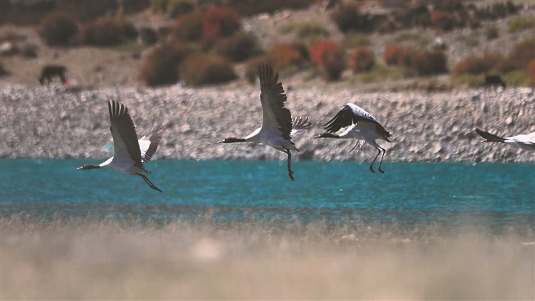 圖為墨竹工卡縣的越冬候鳥。記者 格桑倫珠 攝