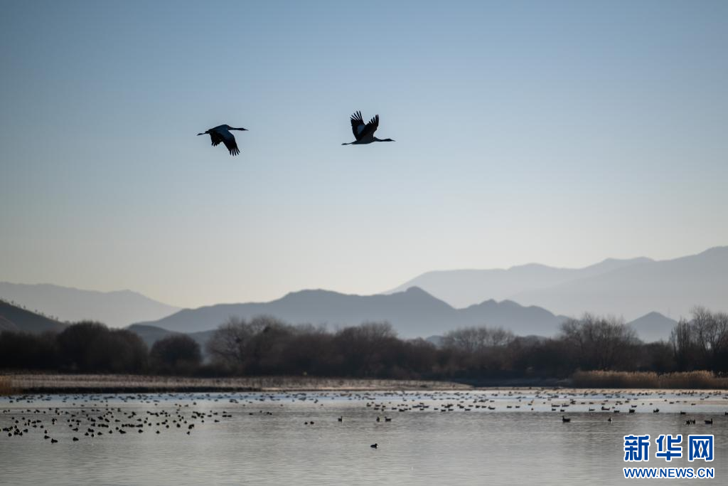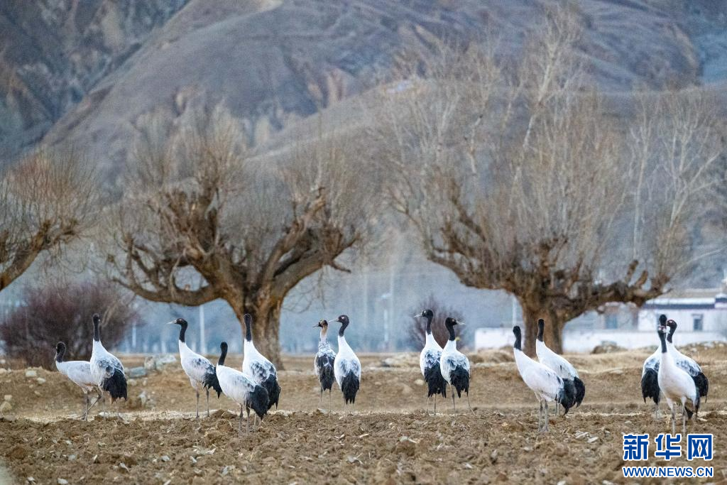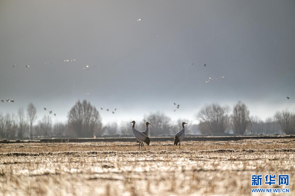 12月18日,在西藏日喀則市南木林縣境內拍攝的黑頸鶴。新華網 旦增努布 攝