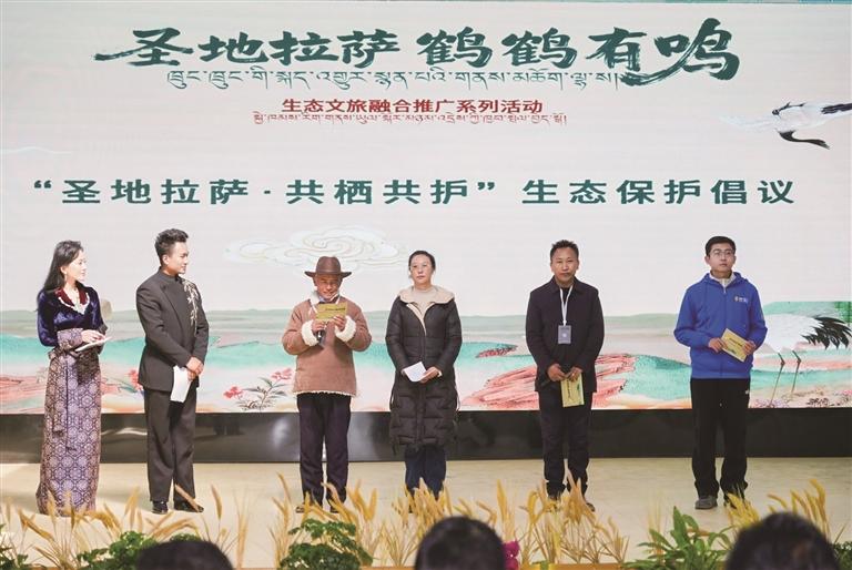 啟動儀式上,拉薩市生態(tài)環(huán)境局、 拉薩市林業(yè)和草原局、高原守鶴人旦增、美麗公約組織代表共同發(fā)起“圣地拉薩·共棲共護(hù)”生態(tài)保護(hù)倡議,呼吁全社會共同參與生態(tài)保護(hù)與可持續(xù)發(fā)展。
