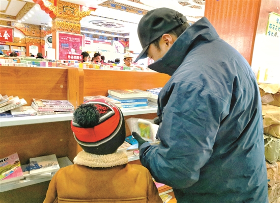 圖為家長陪孩子選購圖書。拉薩融媒記者 郭雨輝攝