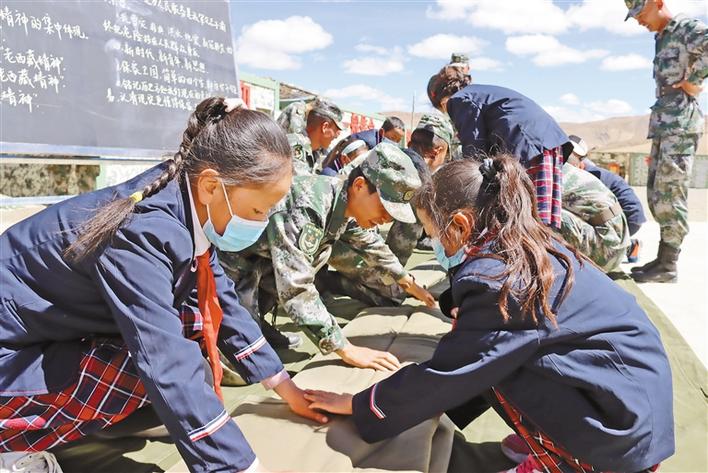 近日,西藏軍區(qū)某合成旅組織開展“軍營開放日”主題活動,邀請駐地小學(xué)生參觀軍營。開放日當(dāng)天,官兵們分小組帶領(lǐng)同學(xué)們參觀榮譽(yù)室,體驗(yàn)整理內(nèi)務(wù)等,并為同學(xué)們上了一堂精彩的國防教育課,進(jìn)一步增強(qiáng)同學(xué)們的國防意識。