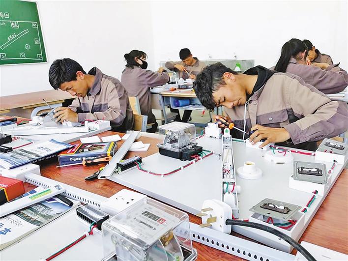 西藏技師學(xué)院的學(xué)生們?cè)谏想姽?shí)訓(xùn)課程,為將來走上工作崗位奠定基礎(chǔ)。記者 孫文娟 攝