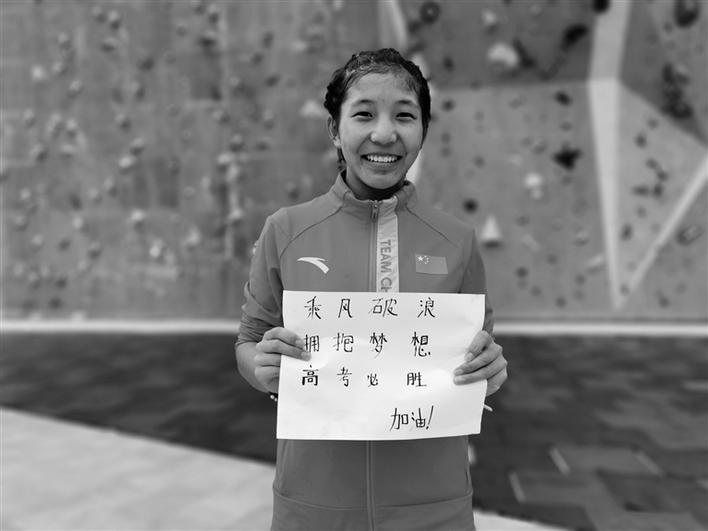 “乘風(fēng)破浪,擁抱夢(mèng)想,高考必勝?!蔽鞑鼗╆?duì)的隊(duì)員們也送來了祝福。