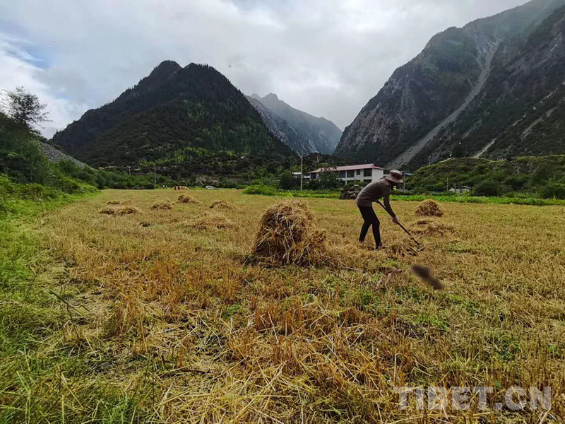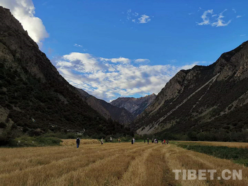 高原的仲秋是最舒服的季節(jié)。在林芝市察隅縣古拉鄉(xiāng)俄玉村的田地上,村民們正忙碌著,秋收的喜悅滲透在每一次彎腰整理麥稈、每一次捆起沉甸甸的麥穗、每一次扛起裝滿麥粒的袋子中。
