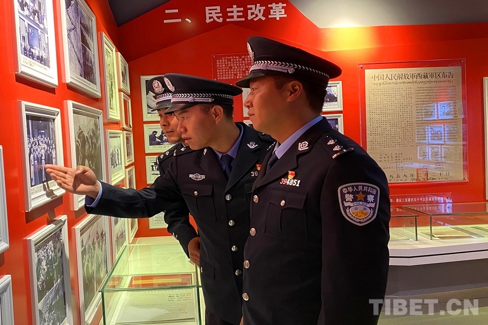 圖為浪卡子邊境管理大隊開設警營講堂,帶領民警走近國恥歷史 攝影:楊敬臣