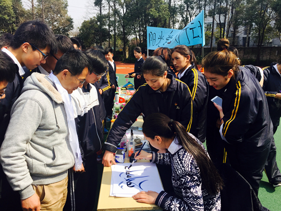 上海市浦東外事服務學校師生在校內參加愛心義賣活動。受訪者供圖