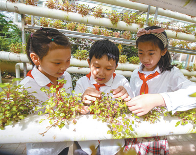近日,江蘇省海安市城南實驗小學(xué)組織學(xué)生走進(jìn)現(xiàn)代農(nóng)業(yè)園,近距離感受先進(jìn)農(nóng)業(yè)栽培技術(shù),豐富學(xué)生課外生活。翟慧勇攝