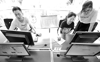 湖北襄陽(yáng)高新區(qū)東風(fēng)社區(qū)電子閱覽室為居民提供免費(fèi)線上閱讀服務(wù)。新華社發(fā)