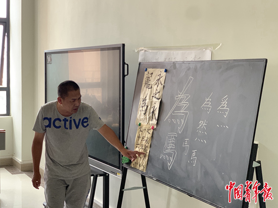 蔡偉給學(xué)生上書(shū)法課。王景爍攝