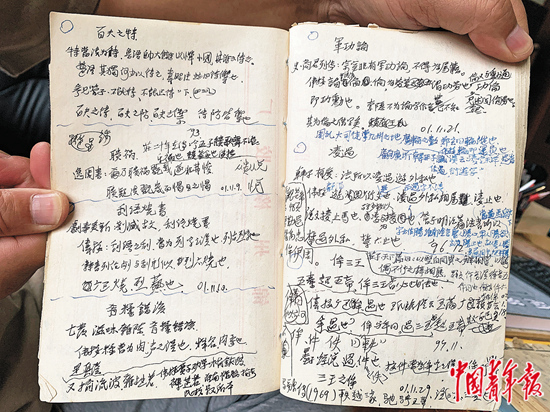 這些已刊發(fā)的文章,不少來(lái)源于他早期寫(xiě)下的讀書(shū)札記。他積攢下了幾十本筆記,落款的時(shí)間跨越了30年。