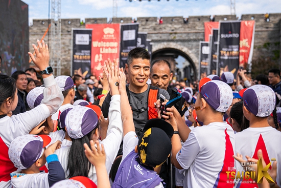 10月25日,珊瑚越野·少兒賽體彩柴古公益站,孩子們出發(fā)前,與完賽歸來的115公里選手互動(dòng)。賽事組委會有關(guān)人士介紹,之所以如此安排孩子們的出發(fā)時(shí)間, 就是想引導(dǎo)孩子們感受來自115公里組別的堅(jiān)持和不放棄。讓孩子們感受到對他人贊美、鼓勵(lì)、共情的同時(shí),他們自己也能收獲到喜悅。