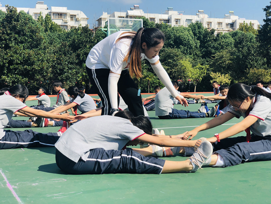 南京十三中紅山分校的體育老師在指導(dǎo)學(xué)生進(jìn)行體育活動。南京十三中紅山分校供圖