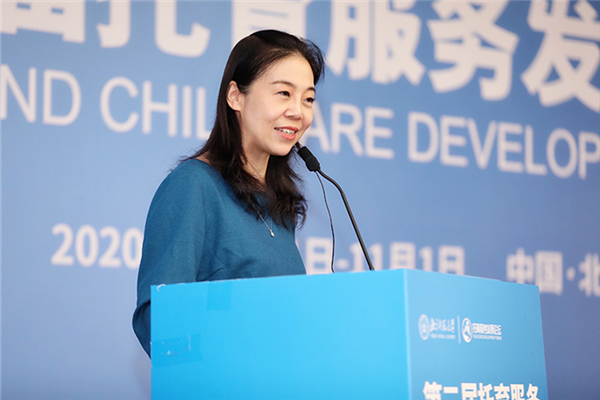 稚夢嬰幼學(xué)苑CEO孫硯冰發(fā)表《識時順勢 共育未來》主題報告。