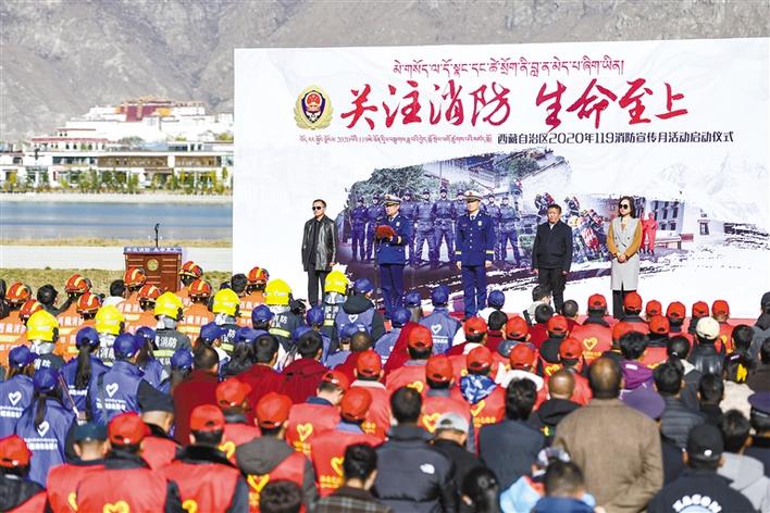 西藏自治區(qū)2020年119消防宣傳月活動(dòng)啟動(dòng)儀式現(xiàn)場(chǎng)。