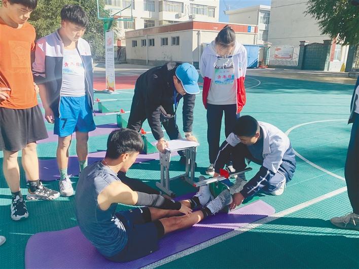 “全民健身·活力中國”國家體育鍛煉標(biāo)準(zhǔn)達(dá)標(biāo)測驗(yàn)賽日喀則站活動中,學(xué)生在進(jìn)行坐位體前屈測試。記者 潘璐 攝