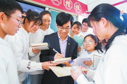 分享結(jié)束后,學(xué)生們圍著孟憲實(shí)開展進(jìn)一步交流,并紛紛請(qǐng)他簽名?!拔沂且幻佬g(shù)藝術(shù)生,但是一直對(duì)歷史很感興趣。孟老師的講解更是讓我堅(jiān)信,以后要更深入地了解歷史知識(shí),在之后的美術(shù)作品里融入更多的歷史氣息。”高二年級(jí)的潘虹羽,中午吃飯時(shí)依然在回味這場(chǎng)共讀活動(dòng)。