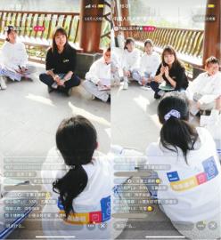 中國(guó)人民大學(xué)校友康瑜和同學(xué)們一道品讀小詩(shī)。