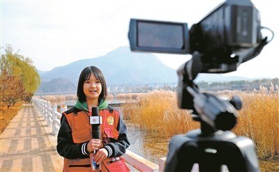“金秋時節(jié),聽說清水河又飛來了白天鵝,我們特意來到河邊探訪一下……”太師屯鎮(zhèn)中心小學(xué)校園電視臺小記者實地采訪、精心錄制,專題節(jié)目《守護(hù)天鵝》通過校園電視臺向師生及家長播出。樊世剛 攝
