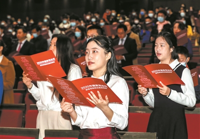 “中華人民共和國實行依法治國,建設(shè)社會主義法治國家……”12月5日,教育部黨組成員、副部長田學(xué)軍來到位于北京外國語大學(xué)西院千人禮堂的“憲法晨讀”活動北京主會場,一字一句帶領(lǐng)現(xiàn)場學(xué)生朗讀憲法部分條文。