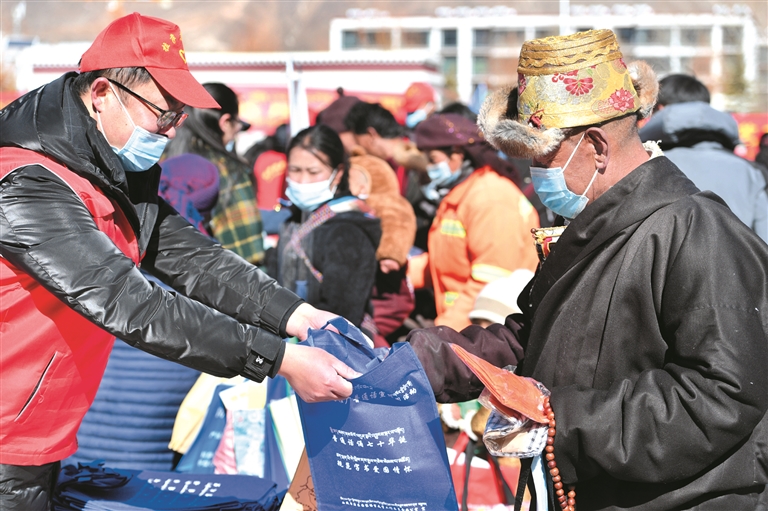 隨著春節(jié)、藏歷新年腳步越來越近,熱熱鬧鬧的年味越來越濃。2月1日,由拉薩市委宣傳部牽頭,市文聯(lián)、市教育局、市司法局、市衛(wèi)健委等16家單位走進(jìn)墨竹工卡縣新時(shí)代文明實(shí)踐中心,開展文化科技衛(wèi)生法律愛國愛教服務(wù)“五下鄉(xiāng)”活動(dòng),為當(dāng)?shù)厝罕娝蜕闲履甓Y物。