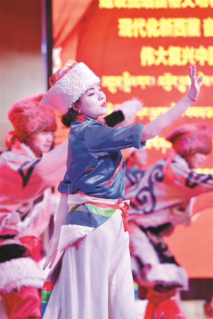 活動(dòng)現(xiàn)場,演員們?yōu)榇蠹規(guī)砹司实母栉璞硌荨D片由拉薩融媒視覺組攝