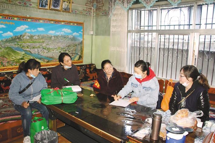 圖為城關區(qū)婦聯(lián)發(fā)放“母親郵包”。 央金 攝