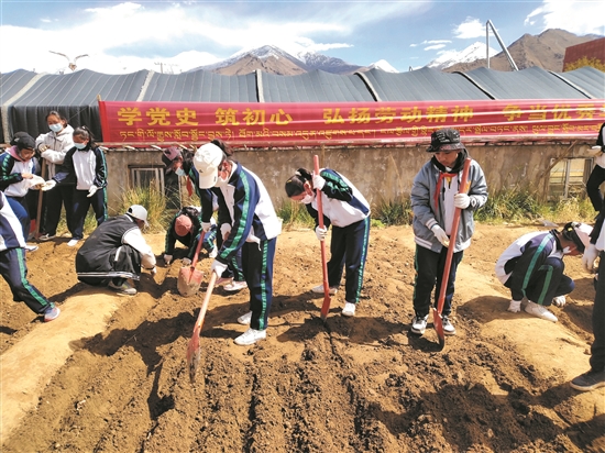 圖為拉薩北京實(shí)驗(yàn)中學(xué)的學(xué)生們在田間勞動。拉薩融媒記者 莫瑞英攝