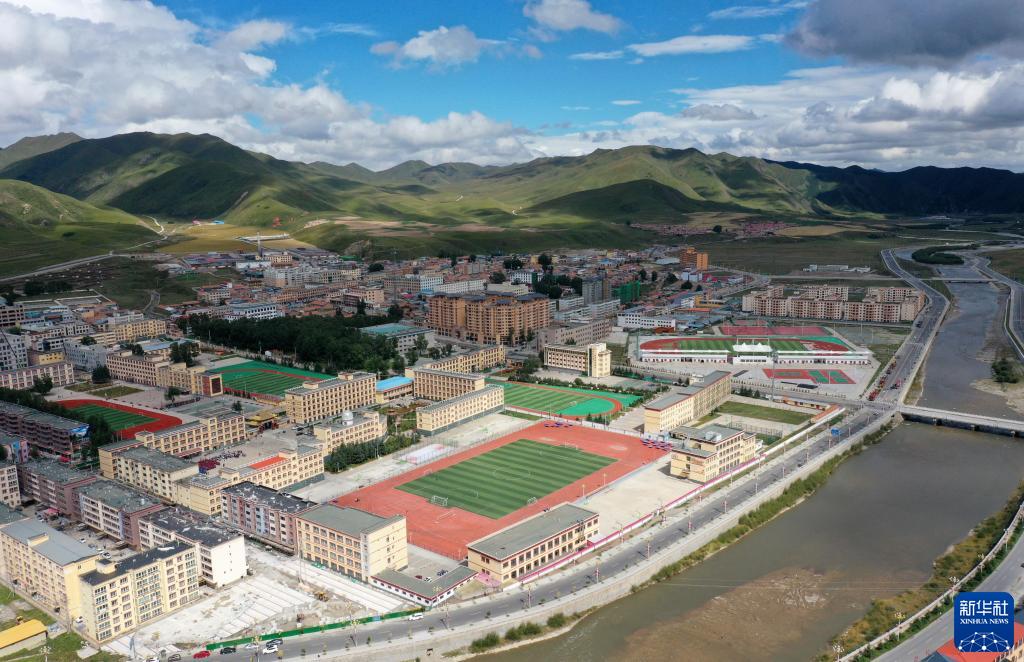 這是8月30日拍攝的碌曲縣藏族中學(xué)(無(wú)人機(jī)照片)。新華社記者 杜哲宇 攝