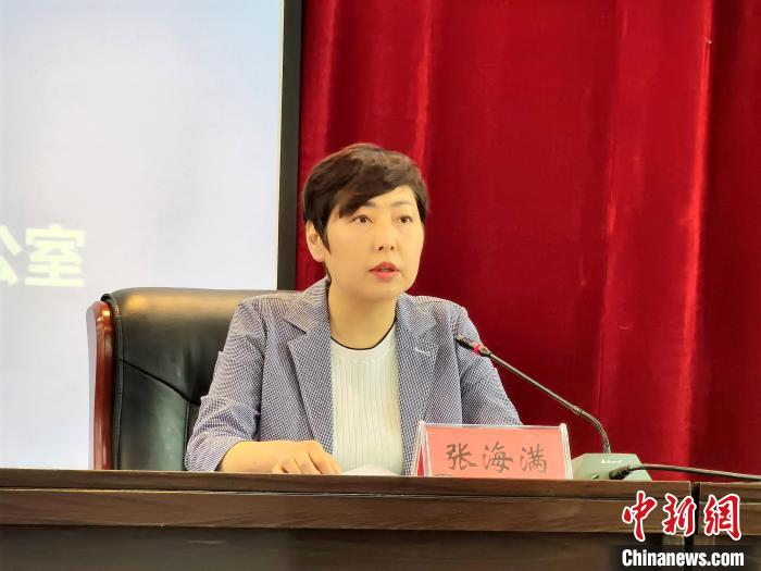 圖為青海省人民政府國(guó)有資產(chǎn)監(jiān)督管理委員會(huì)副主任張海滿介紹人才支持政策等情況?!∑钤鲚?攝