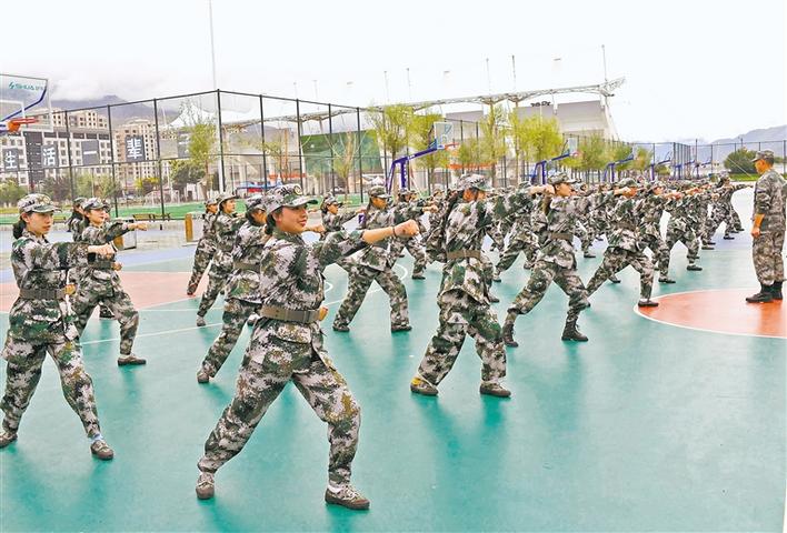 近日,西藏大學(xué)2020級學(xué)生走進(jìn)軍訓(xùn)場,通過站軍姿、走正步、練隊形等訓(xùn)練項目,培養(yǎng)愛國情懷和家國意識,增強體質(zhì),錘煉意志。