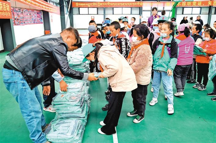 圖為愛心書包發(fā)放現場。記者 巴桑旺姆 攝