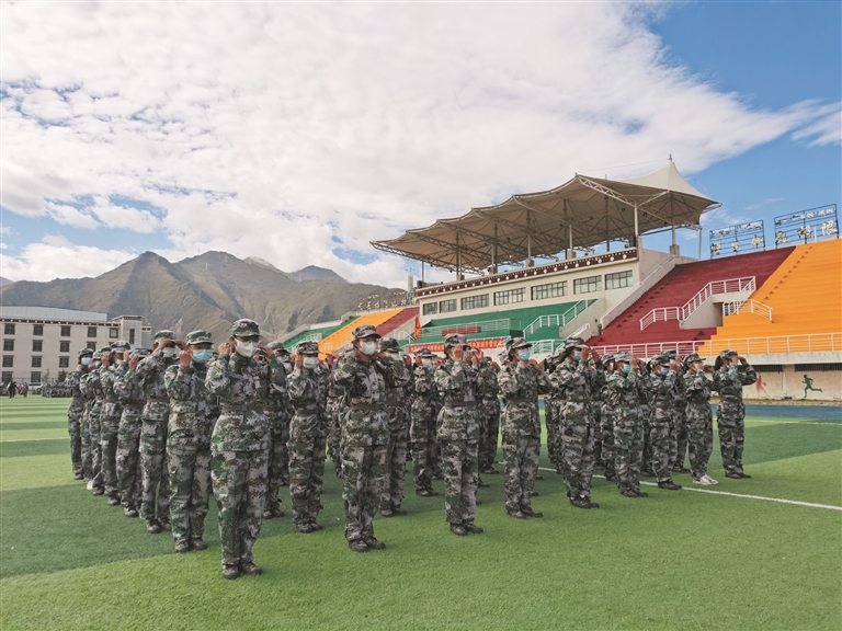 該校學生工作處主任次仁班旦說:“在校黨委的高度重視下,多次醞釀、精心部署,學校開展了2021級新生軍訓。我們希望通過軍訓增強學生的愛國主義意識,增強國防教育意識,把規(guī)矩、紀律納入軍訓的課程當中來,讓學生守規(guī)矩、學知識、學技能,鍛煉學生的意志品質(zhì)?!?/p>