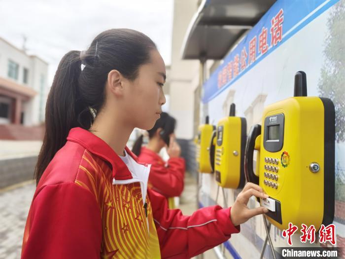 圖為臨潭一中學生王若玉刷電子?;战o家人打電話?!堟?攝