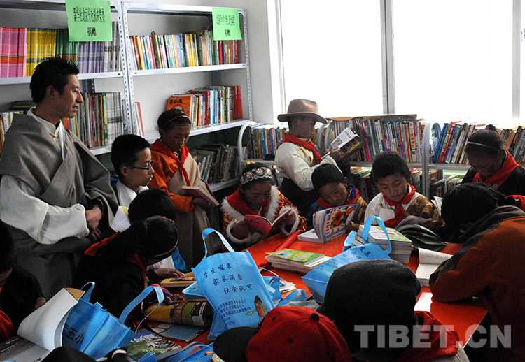 這是西藏那曲地區(qū)那曲縣(現(xiàn)那曲市色尼區(qū))羅瑪鎮(zhèn)中心小學(xué)學(xué)生在新建的“愛(ài)心書(shū)屋”快樂(lè)地讀書(shū)(唐召明2014年5月29日攝)