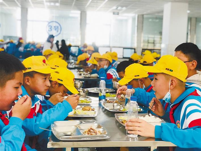 圖為學(xué)生在新校區(qū)食堂用餐。記者 央金 攝