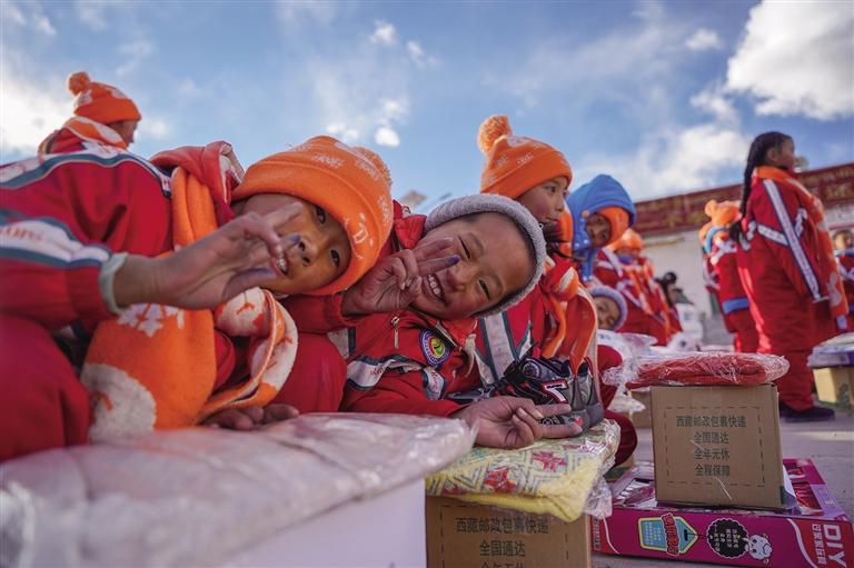 “扎西旺堆,過來領(lǐng)你的足球,還有去老師那邊拿盲盒和毛衣。”當木江鄉(xiāng)初小校長旦增頓珠將孩子們一個個叫過來。在一旁的王順利、申國強負責給孩子們發(fā)放心愿禮物,西藏商報記者、工作人員給孩子們遞上一個個“盲盒”。
