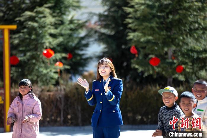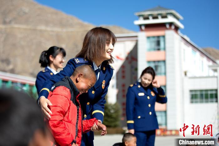在活動中,志愿者們首先與孩子們進(jìn)行了自我介紹,詳細(xì)了解孩子們的生活、學(xué)習(xí)情況。同時(shí),帶著孩子們開展跳繩、丟沙包、短跑等互動活動。隨后,藏族歌手、總隊(duì)教育宣傳處助理員索朗德吉為孩子們演唱歌曲,在動聽的旋律中不時(shí)傳來孩子們的歡聲笑語,其樂融融的氛圍,更是感染著在場的每一個(gè)人。
